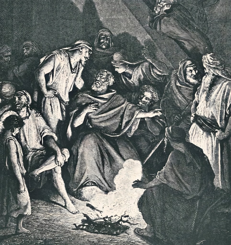 Мы все слишком хорошо знаем, что значит иногда отойти от Христа. И мы не стали бы расспрашивать Петра, когда он, вместе с остальными, грелся у костра. Кому известно, как вероломно человеческое сердце, тот не станет удивляться, что человек, так долго живший со Христом, видевший все Его чудеса, удостоившийся в числе избранных узреть славу преображения, мог отречься от своего Господа и начать клясться в Его присутствии, когда в ушах его еще звучали самые торжественные слова, когда-либо слышанные людьми, когда сердце его было еще согрето воспоминанием о Тайной Вечере, когда на его устах еще не обсохло вино — знак крови Спасителя! Подобные вещи не чужды всем, кто принимает участие в ужасной трагедии греха.